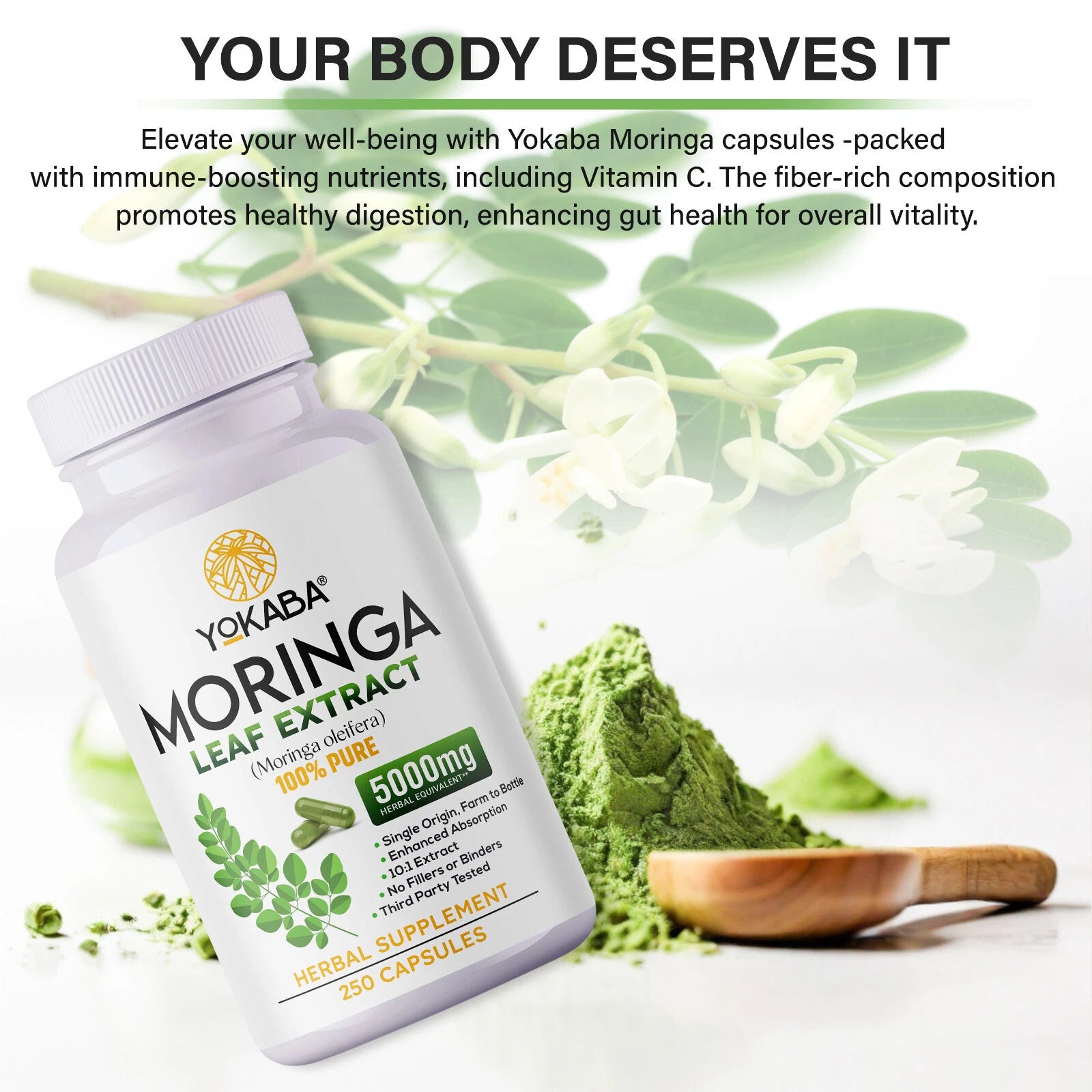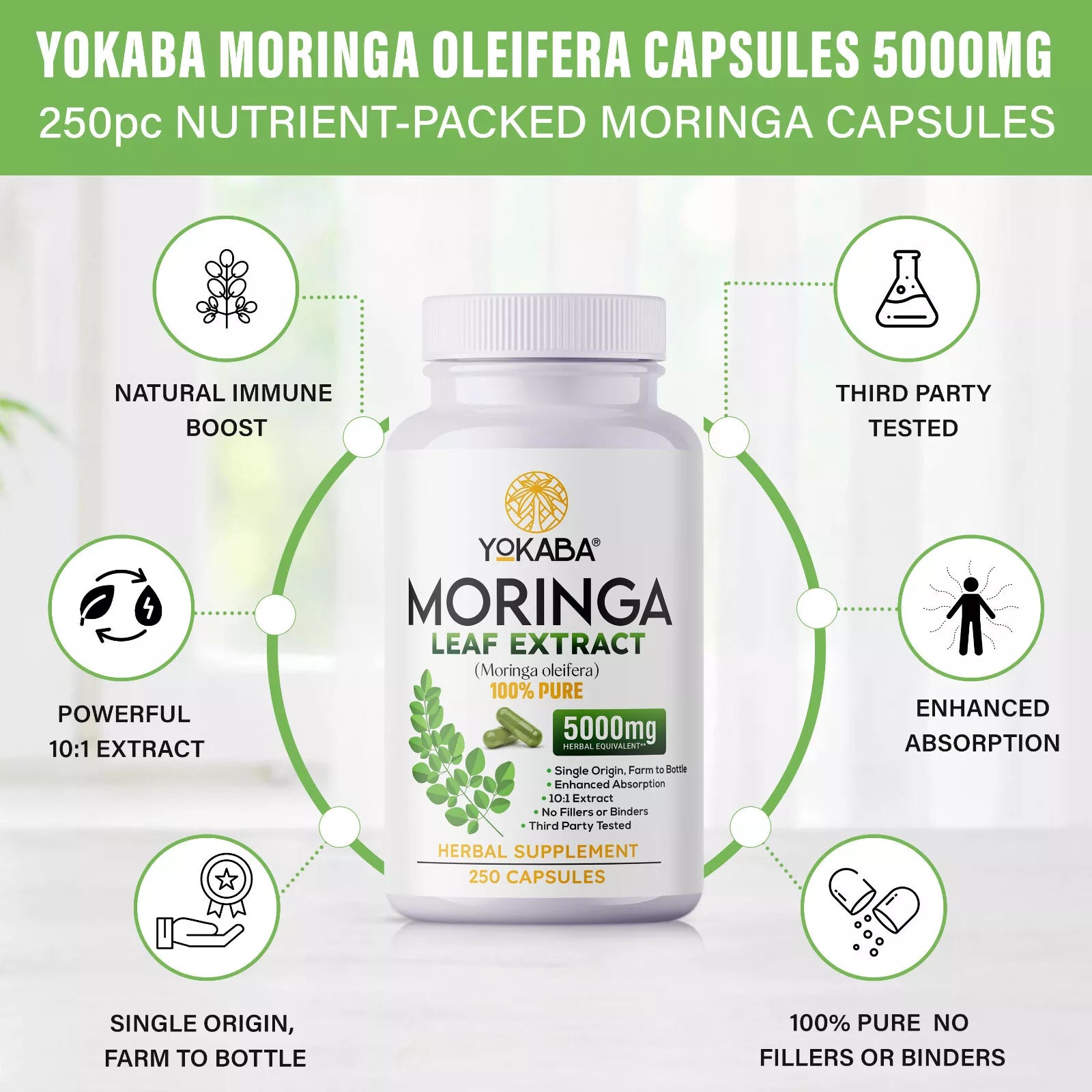 Fuel your body naturally with Moringa Oleifera, one of the most nutrient-rich plants on the planet. This high-potency herbal supplement delivers 5000mg of pure organic Moringa leaf powder per serving in a convenient bottle of 250 capsules. Known as the "Miracle Tree", Moringa offers a wide spectrum of health benefits—from boosting energy and immunity to supporting digestion and skin health.
